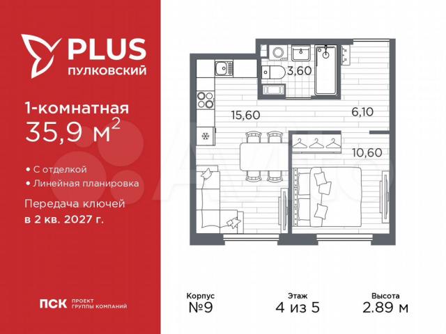 Важное преимущества отделки от застройщика в гарантии на все работы и в том, что фактическая стоимость полной отделки распределяется в ипотечных платежах при покупке в ипотеку.Дом монолитный, трехподъездный, высотой 5 этажей. Квартира находится в 1-й секции в корпусе 9. На этаже 6 квартир. В подъезде 1 грузовой лифт. Окончание строительства - 2 квартал 2027 года. Оформление сделки по договору долевого участия.ЖК «РLUS Пулковский» расположен в престижном Московском районе на пересечении Пулковского и Волхонского шоссе, по которым можно быстро добраться до КАД и до станций метро Московская и Звёздная.Поблизости расположены дворцово-парковые ансамбли Пушкина, Павловска, Петергофа, Гатчины, Ломоносова, а также вся торговая и развлекательная инфраструктура: ТК Лето, Оutlеt Villаgе Рulkоvо, Пулково-3, гипермаркеты Лента, Окей, Меtrо.На территории комплекса будут построены средняя образовательная школа на 825 мест с двумя бассейнами, 2 детских сада на 220 мест каждый. В детских садах тоже будут бассейны. Кроме этого будет построен медицинский центр для взрослых и детей.Во дворах буду оборудованы спортивные и безопасные детские площадки, на первых этажах домов будут расположены коммерческие помещения. Для автолюбителей будут подземные и наземный паркинги.Для жителей домов будет доступно "приложение жителя", которое предоставит такие возможности: