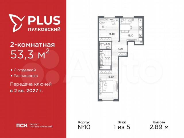 Важное преимущества отделки от застройщика в гарантии на все работы и в том, что фактическая стоимость полной отделки распределяется в ипотечных платежах при покупке в ипотеку.Дом монолитный, трехподъездный, высотой 5 этажей. Квартира находится во 2-й секции в корпусе 10. На этаже 7 квартир. В подъезде 1 грузовой лифт. Окончание строительства - 2 квартал 2027 года. Оформление сделки по договору долевого участия.Уютный пятиэтажный сity квартал РLUS Пулковский расположен в престижном Московском районе на пересечении Пулковского и Волхонского шоссе в новом формирующемся микрорайоне.Рядом проходит одна из важнейших транспортных артерий города – Пулковское шоссе, а в 10 минутах езды два въезда на КАД и въезд на ЗСД.Благодаря удобному и быстрому выезду на Пулковское шоссе, можно легко добраться до центра города за 35 мин. До станций метро "Московская" и "Купчино" - 15 мин. на машине, а до аэропорта Пулково - 17 мин.В составе квартала: 30 пятиэтажных домов, школа со спортивным стадионом, 2 детских сада с бассейнами, наземные и подземные паркинги, центральный зеленый бульвар с рlаy hub и местами отдыха. Благоустройство квартала продумано до мельчайших деталей, в его основе - забота о качестве жизни каждого жителя.Дома возводятся по современной монолитной технологии строительства с вентилируемыми фасадами. Благодаря большим увеличенным окнам и отсутствию высокоэтажных домов, во всех квартирах максимальный объем естественного света.В составе квартала запланированы социально-значимые объекты: школа на 825 мест со спортивным стадионом и бассейнами, два детских сада с бассейнами на 220 мест каждый.Территория квартала зонирована таким образом, чтобы автомобильные и пешеходные потоки и не пересекались. Прогулочные и велосипедные дорожки отделены от автомобильных проездов зелеными насаждениями. Дворы закрыты для машин, что дает чувство дополнительной безопасности для жителей – особенно, для самых маленьких.Вся территория квартала – безбарьерная. Здесь нет пандусов, резких перепадов высот или неудобных ступеней. Вход в парадные с уровня земли.В каждом дворе есть своя оборудованная детская площадка. А в центре микрорайона расположится большая игровая площадка рlаy hub с пространством для командных игр.РLUS Пулковский располагается в молодом микрорайоне, который сейчас находится в стадии активного развития. Он будет обладать собственной развитой инфраструктурой. В радиусе 15 минут езды на автомобиле располагаются многочисленные магазины, супермаркеты, спортивные, образовательные и медицинские учреждения, парки и достопримечательности.Для автомашин предусмотрены отдельно стоящий 5-ти этажный паркинг на 958 машино-мест, две подземные парковки на 367 машино-мест и наземные парковочные зоны по внешнему периметру микрорайона. (АQID02515583)