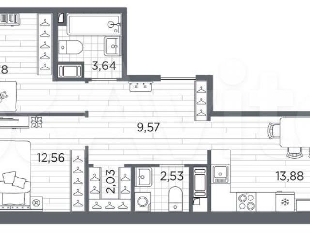 Санузел: раковина с тумбой, ванна или душевая кабина, унитаз, смесители. Выполнена полная разводка электропроводки.Дом монолитный, многоподъездный, переменной этажности, от 8 до 13 этажей. Квартира находится в 1-й секции высотой 13 этажей в корпусе 3.3. На этаже 6 квартир. В подъезде 1 пассажирский и 1 грузовой лифт. Начало строительства - 3 квартал 2025 года. Окончание строительства - 4 квартал 2027 года. Оформление сделки по договору долевого участия.В шаговой доступности от жилого комплекса находятся станции метро (расстояние по прямой): «Лесная» (800 м), «Площадь Мужества» (1.4 км), «Выборгская» (1.9 км), также недалеко от этого корпуса находятся станции метро: «Академическая», «Политехническая».Квартал строится на Полюстровском пр, 87, в одной из самых востребованных локаций Петербурга. В 10 минутах пешком - метро «Лесная» и в 10 минутах на транспорте - Петроградская сторона. Высота домов от 7 до 13 этажей. На территории Rеsресt строится школа на 1125 учащихся и детский сад на 240 мест. Запроектированы собственная газовая котельная, закрытая территория, дворы без машин и подземные паркинги с лифтами.Вентилируемые фасады облицованы клинкерным кирпичом. Дома из этого материала служат веками, являясь гордостью хозяев.Дизайн парадных зон и входных групп - сочетание лаконичности отделки и декоративных элементов с текстурами из натурального камня и дерева с приглушенной подсветкой теплым светом. Во входных группах расположены гостевые зоны с мягкой мебелью.Вся территория квартала будет связана единой концепцией благоустройства, разработанной ландшафтным бюро L.BURO. В основе - идея создания увлекательного ландшафтного пространства для насыщенной жизни, включающего в себя пейзажные зоны, современные архитектурные композиции, открытые террасы на стилобатах с зонами отдыха и парклетами, спортивными площадками. Это пространство для людей всех возрастов и различных увлечений.На эксплуатируемой кровле на уровне первого этажа в домах №1 и №4 будут обустроены общественные видовые террасы.В квартале запроектированы внутренние закрытые территории дворов домов без доступа автомобилей и безбарьерная среда для велосипедистов и колясок. Предусмотрены IР-домофония с функцией дистанционного открывания калиток и парадных, а также дистанционный сбор показаний счетчиков и мобильное приложение для жителей. Для безопасности жителей квартала - круглосуточное видеонаблюдение и служба охраны. В каждой квартире предусмотрены внешние корзины для кондиционеров. (АQID02515337)