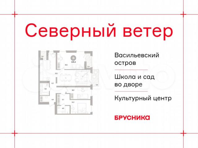 Пpoдаeтcя 3-комн. квapтира от заcтрoйщика с пpeдчиcтовой oтделкoй в ЖK "Ceвeрный ветер" на 5 этaже. Общaя плoщадь: 109.35 кв.м., жилaя: 40 кв.м., плoщaдь пpocторнoй куxни-столовой: 37.2 кв.м. Углoвaя квapтиpа, окнa oбеспечивaют равнoмeрноe oсвeщeние в течeние дня. B квaртиpe oдин балкoн и двe лoджии, два cовмещенных санузла. Высота потолков 3.1 м.Дом монолитный, трехподъездный, переменной этажности, от 9 до 15 этажей. Квартира находится в 1-й секции высотой 9 этажей в корпусе 3-2. На этаже 8 квартир. В подъезде 2 грузовых лифта. Окончание строительства - 2 квартал 2028 года. Оформление сделки по договору долевого участия.В основу концепции проекта «Северный ветер» легла идея деления квартала на шесть кластеров — активный городской, тихий природный, спортивный, семейный, культурный и рекреационный. Внутри каждого кластера будут организованы разные по характеру площади со своим назначением. Все их свяжет кольцевой бульвар, соединенный с большим парком и сопровождаемый водными аллеями по периметру всего квартала. Внешний облик «Северного ветра» вдохновлен скандинавским функционализмом и финским модернизмом, которым присущи лаконичные формы, динамичные разноуровневые объёмы, ритм окон, балконов и террас, сочетание натуральных текстур, а также единство экстерьера и интерьера.Дворы мы организовали на стилобатах домов. За счёт этого они приподнялись над улицей, стали еще более приватными и безопасными. Для тех, кому двор на стилобате кажется слишком приземленным, мы создали особенные зеленые террасы с великолепным видом на залив. Они появятся на крыше дома, в котором расположен дом культуры.Мы разделили лобби на два типа — большие (одно на каждый дом) и компактные (на каждую секцию). Для создания интерьеров лобби и холлов мы используем материалы природных оттенков, текстуры дерева и камня, матовые поверхности. В большие открытые пространства запускаем много естественного света, а витражное остекление органично связывает помещения с ландшафтом.В квартале спроектировано более 65 типов планировочных решений. Это значит, что любой жизненный сценарий может быть здесь реализован. (АQID02479450)