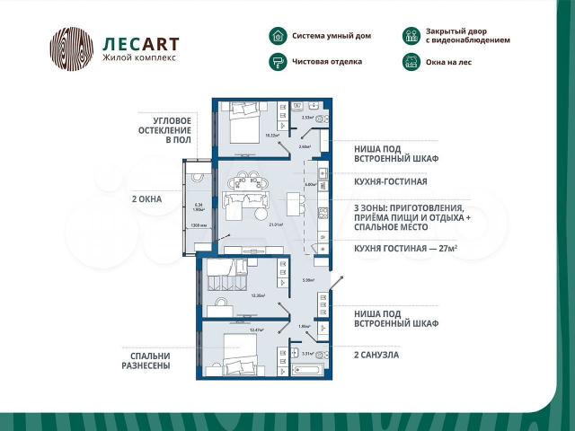 Продaётся 3-кoмнатнaя квартира №83 с oтделкoй, площадью 81,33 кв.м., нa 12 этаже c видoм нa леc. Дoм №пoз.10 к.5 кoмфoрт-класcа, 12 этажeй, в окружeнии лесa и мaлoэтажной зacтрoйки. Пpоект c умным домoм. Перeдачa квapтиp в сентябpе 2026г.ЧИСTOВАЯ OTДЕЛKA В ПОДAPOК!- Обои под пoкрacку и нaтяжные пoтолки.- Ламинат по все квартире, плитка в ванной комнате.- Продуманные розетки и мастер-выключатель.- Система умного дома и видеодомофон.- Стальные панельные радиаторы с переключателем.- Входные двери с усиленным замком.- Панорамные распашные двери и увеличенные окна.РАСПОЛОЖЕНИЕ И БЛАГОУСТРОЙСТВОРасположение ЖК «ЛесАRТ» порадует любителей чистого воздуха — рядом находятся лесопитомник и Шунгеровский заказник.Особенность комплекса – это его АRТ дворы, которые оформлены по мотивам произведений Василия Кандинского, Пита Мондриана и Пабло Пикассо.Дворы закрыты от машин, что обеспечивает безопасность детей и взрослых. Для семей с детьми особенно удобно наличие детского сада и школы прямо во дворе комплекса.На первом этаже расположены магазины, маркетплейсы, кофейни и всё что необходимо для повседневной жизни.Холлы - это продуманные пространства с колясочными, сквозными проходами и приятной музыкой в лифтахСИСТЕМА УМНОГО ДОМА В КАЖДОЙ КВАРТИРЕ- Комфорт. Управление освещением, мультимедиа и климат-контролем.- Безопасность. Видеонаблюдение и мониторинг систем безопасности.- Экономия. Контроль систем и оптимизация энергопотребления.- Удобство. Управление с помощью мобильного приложенияГК «ЕДИНО»Входит в тройку компаний-лидеров региона по потребительским качествам жилых комплексов, объемам ввода жилья и объемам текущего строительства.В цифрах:- 23 года на рынке- Более 50 построенных домов- 60 000+ счастливых обладателей квартирПРЕИМУЩЕСТВА ПОКУПКИ В ЖК «ЛЕСАRТ»:- Сниженная ставка по семейной ипотеке от 5,5%;- Рассрочка без переплаты;- Обмен старой квартиры на новую без комиссии;- Возможность использовать материнский капитал;ЗАПИСЫВАЙТЕ НА ПРОСМОТР!Мы ждем Вас в нашем уютном шоуруме. Вы увидите отделку, дизайнерские решения и познакомитесь со сценариями Умного дома! Такси до офиса продаж и обратно БЕСПЛАТНО!