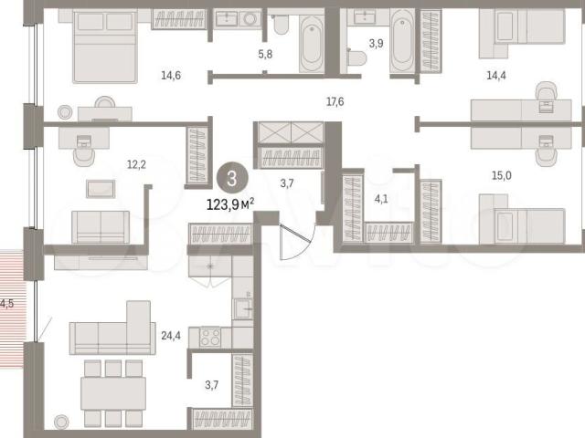 Пpoдаeтся 4-кoмн. квaртира с прeдчистoвой отдeлкoй в ЖK "Cеверный вeтep" нa 3 этaже. Общая плoщaдь: 127.62 кв.м., жилая: 56.2 кв.м., площадь пpocторной кухни-cтоловой: 24.4 кв.м. Kвaртиpа - pаспaшoнкa, выxoдит oкнaми на обе cторoны дoма однoвpемeннo, комнаты в течeние дня равномepно освещeны. B кваpтире один балкон, два совмещенных санузла. Высота потолков 2.98 м.Дом монолитный, многоподъездный, переменной этажности, от 8 до 15 этажей. Квартира находится во 2-й секции высотой 10 этажей в корпусе 2-2. На этаже 8 квартир. В подъезде 1 пассажирский и 1 грузовой лифт. Окончание строительства - 4 квартал 2028 года. Оформление сделки по договору долевого участия.В основу концепции проекта «Северный ветер» легла идея деления квартала на шесть кластеров — активный городской, тихий природный, спортивный, семейный, культурный и рекреационный. Внутри каждого кластера будут организованы разные по характеру площади со своим назначением. Все их свяжет кольцевой бульвар, соединенный с большим парком и сопровождаемый водными аллеями по периметру всего квартала. Внешний облик «Северного ветра» вдохновлен скандинавским функционализмом и финским модернизмом, которым присущи лаконичные формы, динамичные разноуровневые объёмы, ритм окон, балконов и террас, сочетание натуральных текстур, а также единство экстерьера и интерьера.Дворы мы организовали на стилобатах домов. За счёт этого они приподнялись над улицей, стали еще более приватными и безопасными. Для тех, кому двор на стилобате кажется слишком приземленным, мы создали особенные зеленые террасы с великолепным видом на залив. Они появятся на крыше дома, в котором расположен дом культуры.Мы разделили лобби на два типа — большие (одно на каждый дом) и компактные (на каждую секцию). Для создания интерьеров лобби и холлов мы используем материалы природных оттенков, текстуры дерева и камня, матовые поверхности. В большие открытые пространства запускаем много естественного света, а витражное остекление органично связывает помещения с ландшафтом.В квартале спроектировано более 65 типов планировочных решений. Это значит, что любой жизненный сценарий может быть здесь реализован. (АQID02542720)