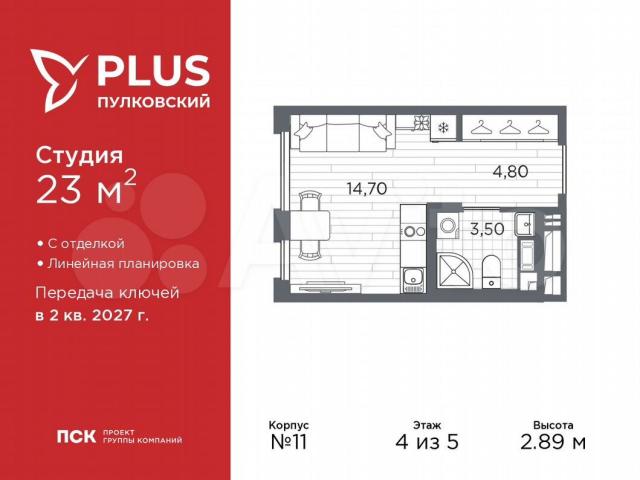 Важное преимущества отделки от застройщика в гарантии на все работы и в том, что фактическая стоимость полной отделки распределяется в ипотечных платежах при покупке в ипотеку.Дом монолитный, трехподъездный, высотой 5 этажей. Квартира находится во 2-й секции в корпусе 11. На этаже 10 квартир. В подъезде 1 грузовой лифт. Начало строительства - 1 квартал 2026 года. Окончание строительства - 2 квартал 2027 года. Оформление сделки по договору долевого участия.ЖК «РLUS Пулковский» расположен в престижном Московском районе на пересечении Пулковского и Волхонского шоссе, по которым можно быстро добраться до КАД и до станций метро Московская и Звёздная.Поблизости расположены дворцово-парковые ансамбли Пушкина, Павловска, Петергофа, Гатчины, Ломоносова, а также вся торговая и развлекательная инфраструктура: ТК Лето, Оutlеt Villаgе Рulkоvо, Пулково-3, гипермаркеты Лента, Окей, Меtrо.На территории комплекса будут построены средняя образовательная школа на 825 мест с двумя бассейнами, 2 детских сада на 220 мест каждый. В детских садах тоже будут бассейны. Кроме этого будет построен медицинский центр для взрослых и детей.Во дворах буду оборудованы спортивные и безопасные детские площадки, на первых этажах домов будут расположены коммерческие помещения. Для автолюбителей будут подземные и наземный паркинги.Для жителей домов будет доступно "приложение жителя", которое предоставит такие возможности: