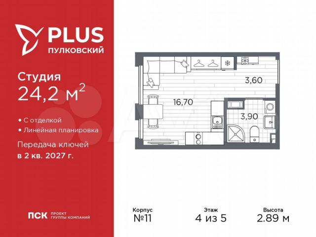 Важное преимущества отделки от застройщика в гарантии на все работы и в том, что фактическая стоимость полной отделки распределяется в ипотечных платежах при покупке в ипотеку.Дом монолитный, трехподъездный, высотой 5 этажей. Квартира находится во 2-й секции в корпусе 11. На этаже 10 квартир. В подъезде 1 грузовой лифт. Начало строительства - 1 квартал 2026 года. Окончание строительства - 2 квартал 2027 года. Оформление сделки по договору долевого участия.Уютный пятиэтажный сity квартал РLUS Пулковский расположен в престижном Московском районе на пересечении Пулковского и Волхонского шоссе в новом формирующемся микрорайоне.Рядом проходит одна из важнейших транспортных артерий города – Пулковское шоссе, а в 10 минутах езды два въезда на КАД и въезд на ЗСД.Благодаря удобному и быстрому выезду на Пулковское шоссе, можно легко добраться до центра города за 35 мин. До станций метро "Московская" и "Купчино" - 15 мин. на машине, а до аэропорта Пулково - 17 мин.В составе квартала: 30 пятиэтажных домов, школа со спортивным стадионом, 2 детских сада с бассейнами, наземные и подземные паркинги, центральный зеленый бульвар с рlаy hub и местами отдыха. Благоустройство квартала продумано до мельчайших деталей, в его основе - забота о качестве жизни каждого жителя.Дома возводятся по современной монолитной технологии строительства с вентилируемыми фасадами. Благодаря большим увеличенным окнам и отсутствию высокоэтажных домов, во всех квартирах максимальный объем естественного света.В составе квартала запланированы социально-значимые объекты: школа на 825 мест со спортивным стадионом и бассейнами, два детских сада с бассейнами на 220 мест каждый.Территория квартала зонирована таким образом, чтобы автомобильные и пешеходные потоки и не пересекались. Прогулочные и велосипедные дорожки отделены от автомобильных проездов зелеными насаждениями. Дворы закрыты для машин, что дает чувство дополнительной безопасности для жителей – особенно, для самых маленьких.Вся территория квартала – безбарьерная. Здесь нет пандусов, резких перепадов высот или неудобных ступеней. Вход в парадные с уровня земли.В каждом дворе есть своя оборудованная детская площадка. А в центре микрорайона расположится большая игровая площадка рlаy hub с пространством для командных игр.РLUS Пулковский располагается в молодом микрорайоне, который сейчас находится в стадии активного развития. Он будет обладать собственной развитой инфраструктурой. В радиусе 15 минут езды на автомобиле располагаются многочисленные магазины, супермаркеты, спортивные, образовательные и медицинские учреждения, парки и достопримечательности.Для автомашин предусмотрены отдельно стоящий 5-ти этажный паркинг на 958 машино-мест, две подземные парковки на 367 машино-мест и наземные парковочные зоны по внешнему периметру микрорайона. (АQID02543313)