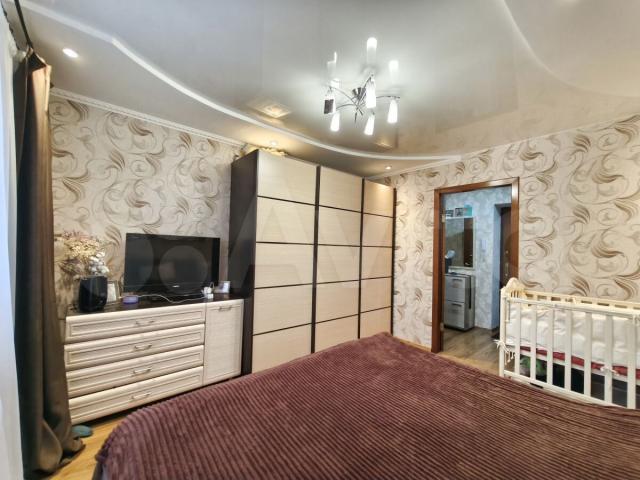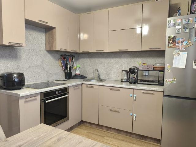 В квартире выполнен качественный ремонт: на полу ламинат, на стенах – стильные обои. Двухуровневые потолки в комнатах и натяжные в коридоре и кухне создают атмосферу современности. Все окна ПВХ, установлена надежная стальная входная дверь и домофон.