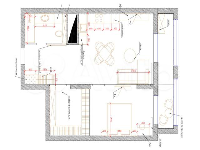 • Комнаты: 2 (13 кв.м + 10 кв.м) + кухня-гостиная 26,2 кв.м